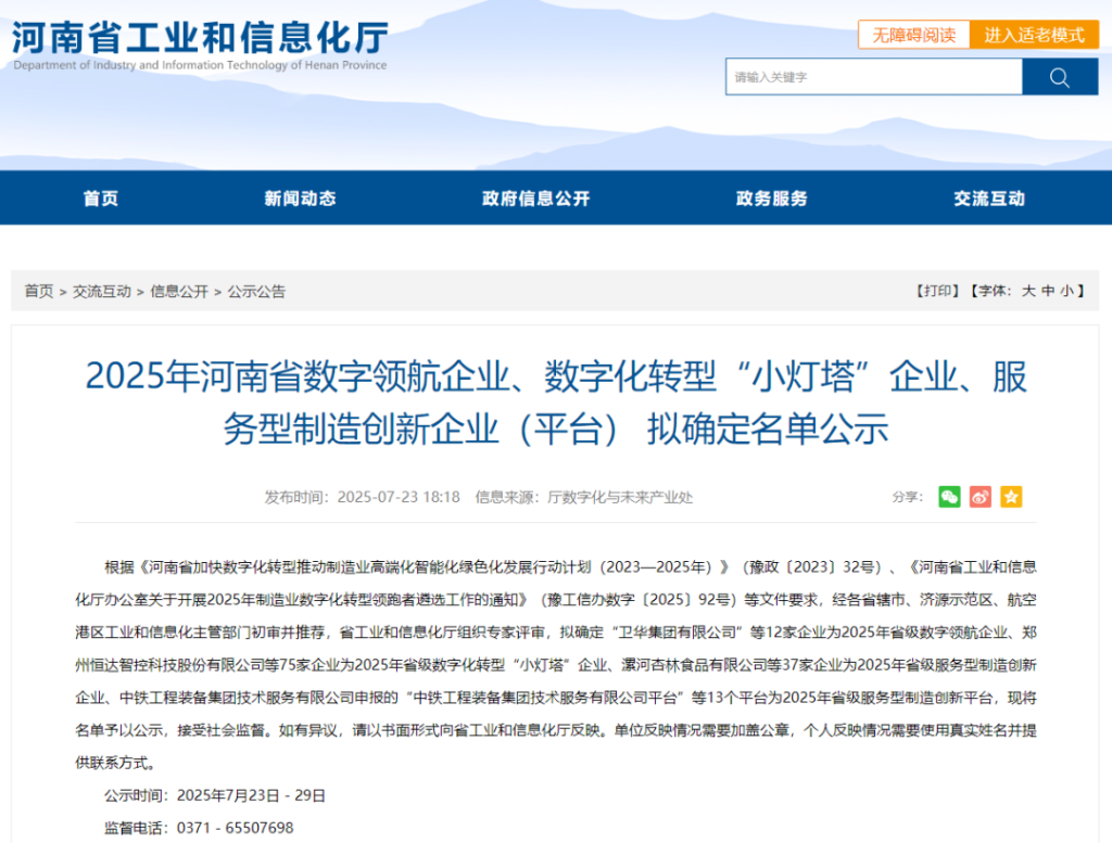 近日,河南省工业和信息化厅公布了2025年河南省数字化转型 “小灯塔” 企业名单。郑州3118云顶集团生物工程有限公司凭借在食品制造业领域的数字化转型与持续深化应用的卓越实践表现,成功入选。